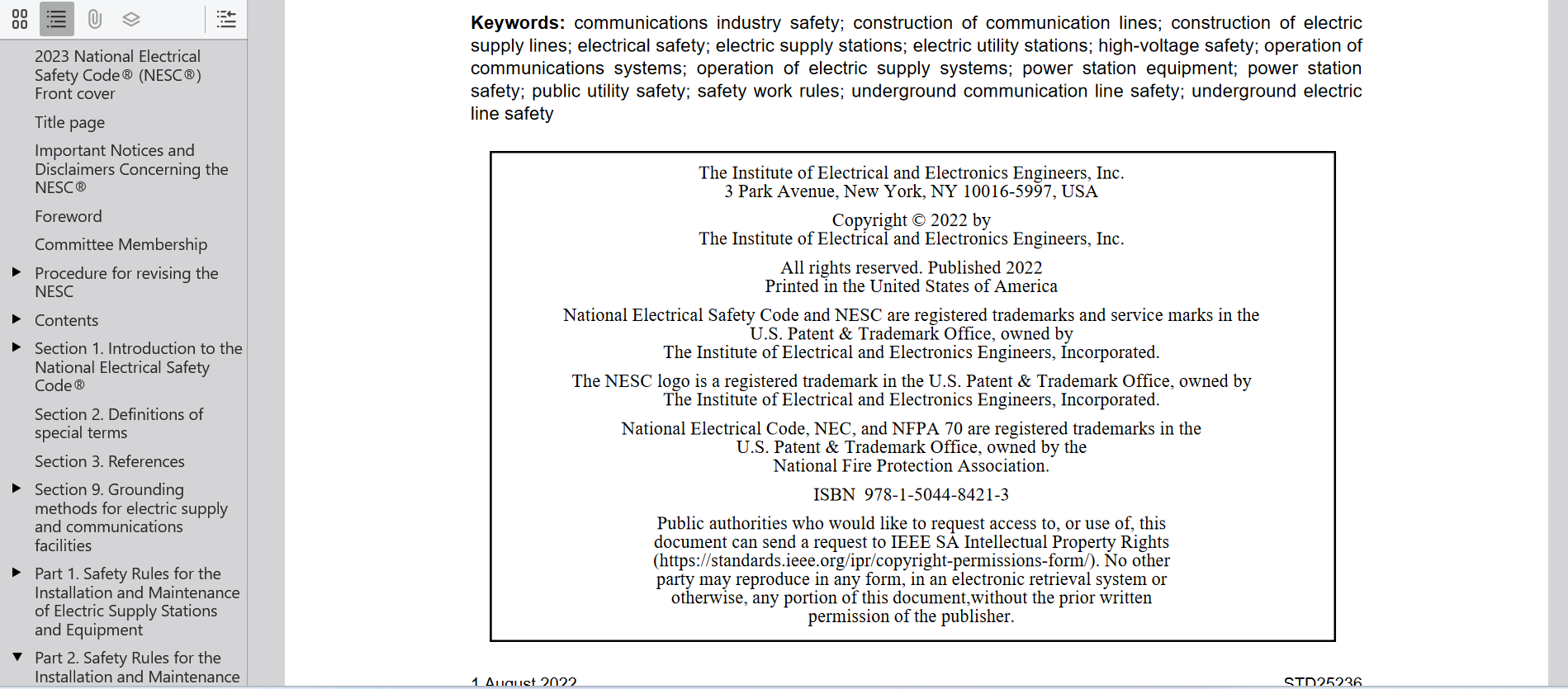 2023 National Electrical Safety Code(R) (NESC(R)) Searchable PDF